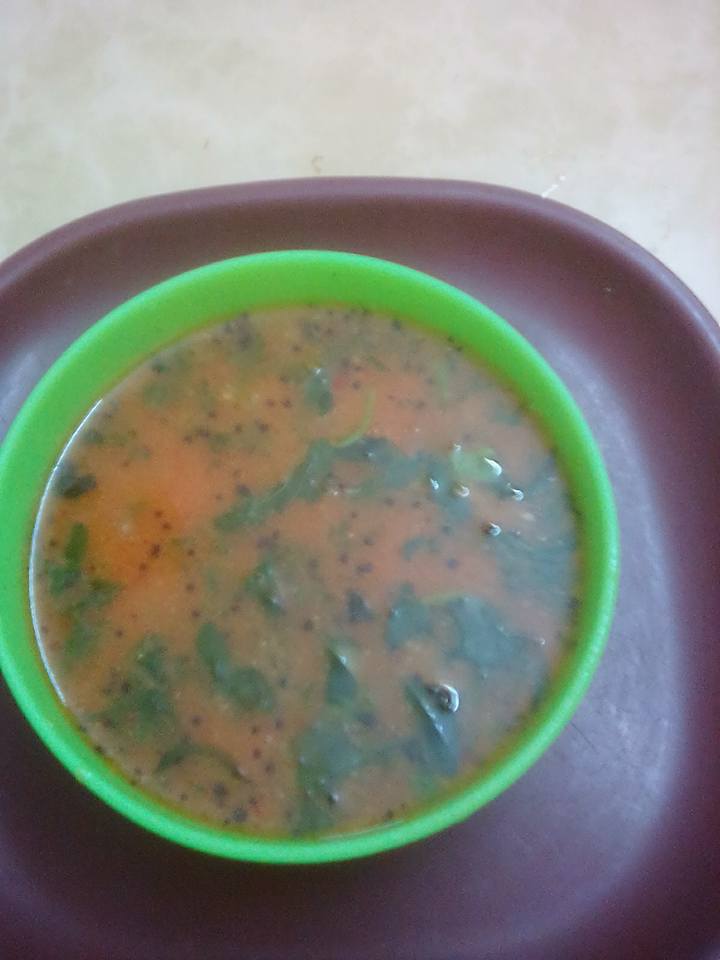 ಬಾಣಲೆಯಲ್ಲಿ 4 ಚಮಚ ಎಣ್ಣೆ ಹಾಕಿ, ಸಾಸಿವೆ, ಜೀರಿಗೆ, ಚಿಟಿಕೆ ಅರಿಶಿಣ, ಈರುಳ್ಳಿ, ಹಸಿ ಮೆಣಸಿನ ಕಾಯಿ, ಕರಿಬೇವು, ಮಾವಿನ ಕಾಯಿ ತುಂಡು, 1 ಚಮಚ ಖಾರ ಪುಡಿ ಹಾಕಿ ಬಾಡಿಸಿ, ಮಾವಿನ ಕಾಯಿ ಮೆತ್ತಗಾದ ಮೇಲೆ, ಬೇಯಿಸಿದ ಬೇಳೆ, ಸ್ವಲ್ಪ ನೀರು, ಉಪ್ಪು(ಚೂರು ಬೆಲ್ಲ /ಸಕ್ಕರೆ ಬೇಕಾದಲ್ಲಿ ಹಾಕಬಹುದು) ಹಾಕಿ 5 ನಿಮಿಷ ಸಣ್ಣ ಉರಿಯಲ್ಲಿ ಕುದಿಸಿ, ಕೊನೆಯಲ್ಲಿ ಕೊತ್ತಂಬರಿ ಸೊಪ್ಪು ಹಾಕಿ, ಚಪಾತಿ/ ಬಿಸಿ ಅನ್ನ, ತುಪ್ಪದ ಜೊತೆ ಬಡಿಸಿ. ಮಾಡುವುದು ಬಹಳ ಸುಲಭ, ರುಚಿಯಾಗಿರುತ್ತದೆ