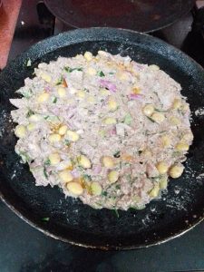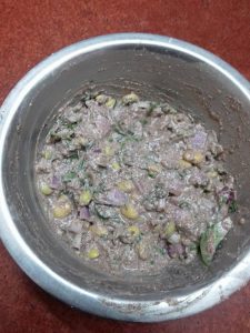 1 ಲೋಟ ರಾಗಿ ಹಿಟ್ಟಿಗೆ, ಹೆಚ್ಚಿದ ಈರುಳ್ಳಿ, ಕೊತ್ತಂಬರಿ, ಕರಿಬೇವು, ಹುರಿದ ಮೆಂತ್ಯ ಸೊಪ್ಪು, ಕಾಯಿ ತುರಿ, 1 ಚಮಚ ಜೀರಿಗೆ,ಉಪ್ಪು, ಚಿಟಿಕೆ ಇಂಗು, ಸ್ವಲ್ಪ ನೀರು ಸೇರಿಸಿ ಮೆತ್ತಗೆ ರೊಟ್ಟಿ ಹಿಟ್ಟು ಕಲೆಸಿಡಿ.